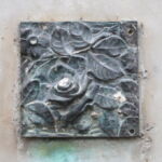 Le quattro borchie agli spigoli della lapide presentano disegni con florilegio.