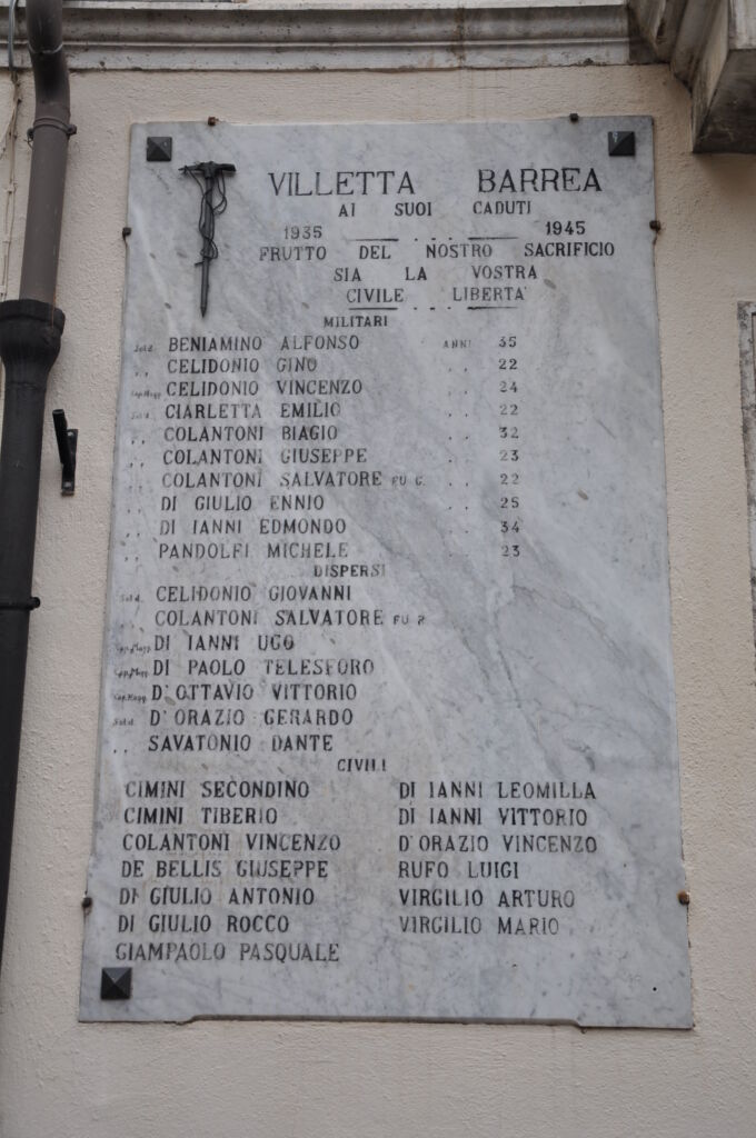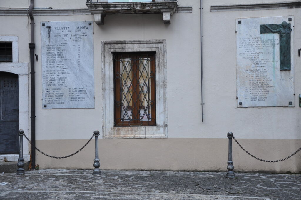 - La lapide è collocata sulla facciata dell'ex Municipio di Villetta Barrea (41° 46' 32. 94" N 13° 56' 06. 41" E)