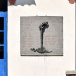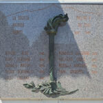 - Lapide in granito con incisioni a lettere capitali in rosso; simboli in bronzo.