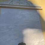 - La lapide è in marmo con decorazioni in bassorilievo. Nella parte bassa è presente un portalume in bronzo.