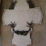 Lapide ai Caduti di Alberoro nella prima guerra mondiale. Di forma cruciforme e con decorazioni a foglie di palma e di quercia applicate, riporta incisi i nomi di 41 Caduti. Piccole stelle dorate ornano il perimetro dei bracci orizzontali della lapide.