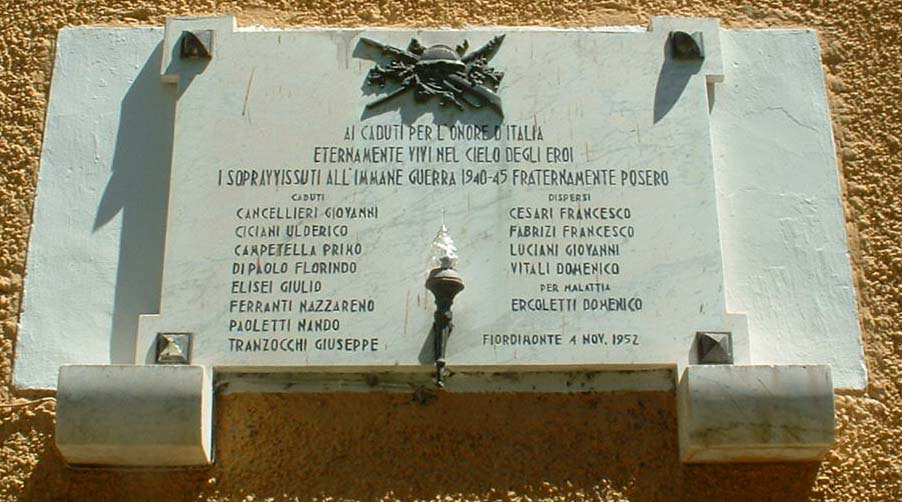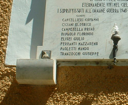 - Pietra posta su una parete del palazzo comunale, rettangolare, molto semplice contenete i nomi dei 13 Caduti.