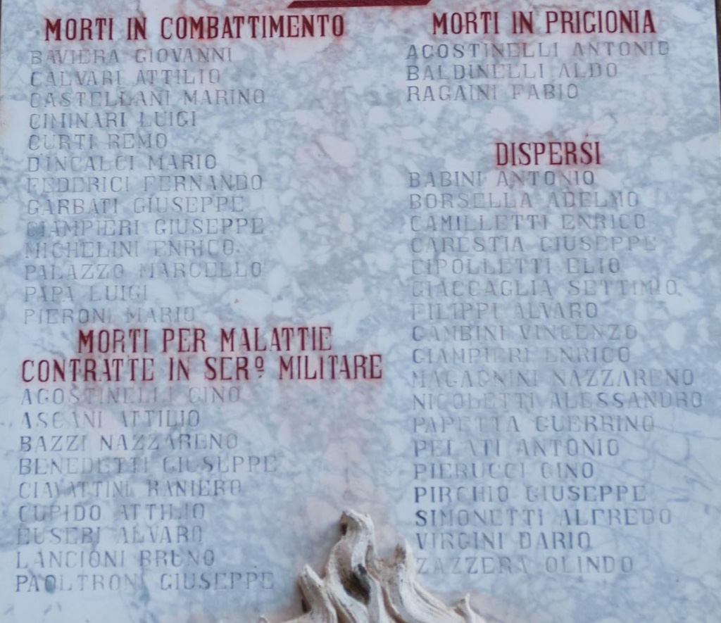 MORTI IN COMBATTIMENTO / BAVIERA GIOVANNI / CALVARI ATTILIO / CASTELLANI MARINO / CIMINARI LUIGI / CURTI REMO / D'INCALCI MARIO / FEDERICI FERNANDO / GARBATI GIUSEPPE / GIAMPIERI GIUSEPPE / GIAMPIERI GIUSEPPE / MICHELINI ENRICO / PALAZZO MARCELLO / PAPA LUIGI / PIERONI MARIO