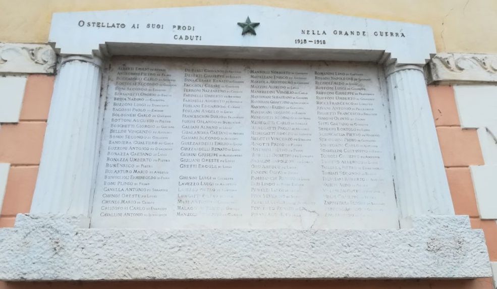 - in alto: OSTELLATO AI SUOI PRODI/ CADUTI/ NELLA GRANDE GUERRA/ 1915 - 1918
