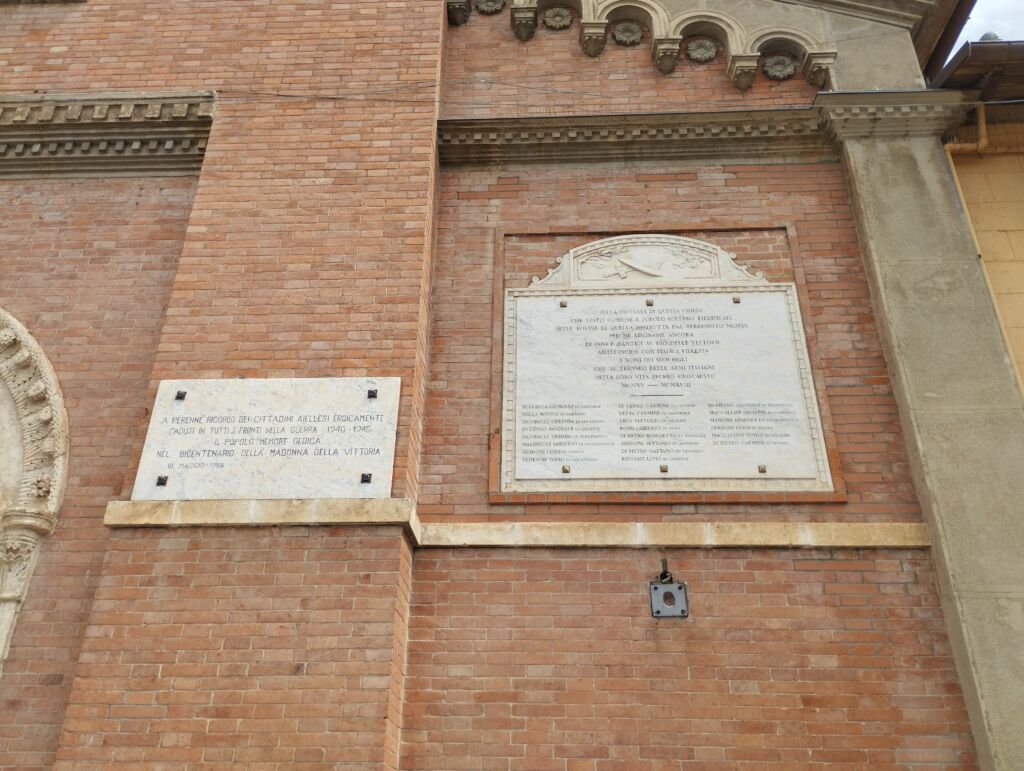 - La lapide non riporta tutti i nomi degli aiellesi caduti durante la Grande Guerra. Il completamento dei nomi è presente nella lastra posta alle spalle del Monumento ai Caduti (pietra 286893).