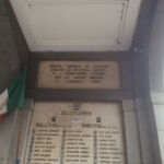 - Lapide rettangolare in marmo rosa; lettere in bronzo; immagini su porcellana.