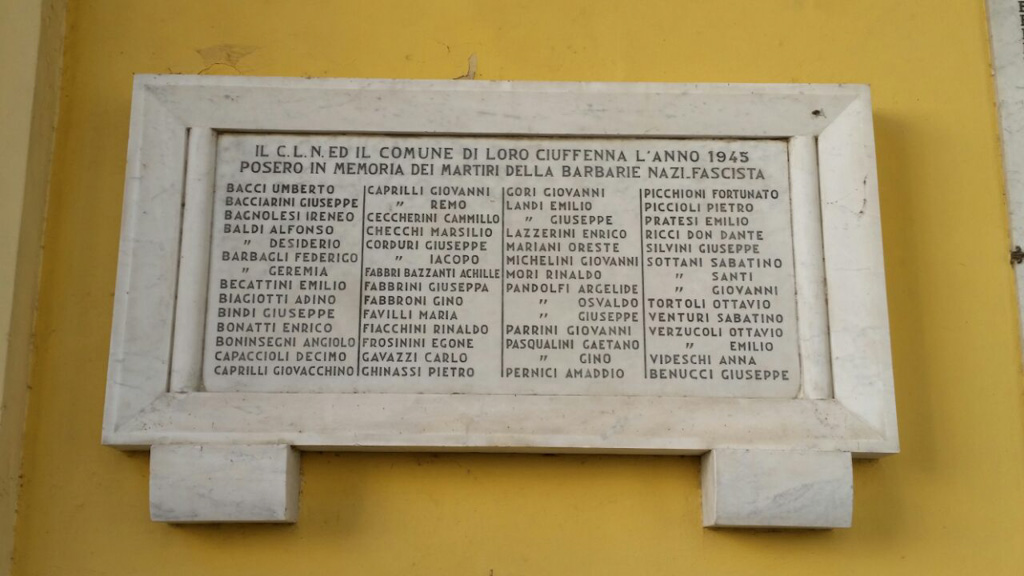 IL C.L.N. IL COMUNE DI LORO CIUFFENNA L'ANNO 1945 POSERO IN MEMORIA DEI MARTIRI DELLA BARBARIE NAZIFASCISTA