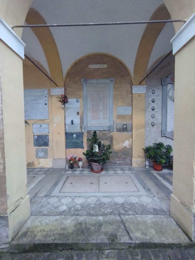 Lapide posta in una cappella della zona 80 del Cimitero di San Giovanni in P. da parte della Società Operaia di Mutuo soccorso a ricordo dei soci caduti nella Grande Guerra.