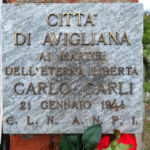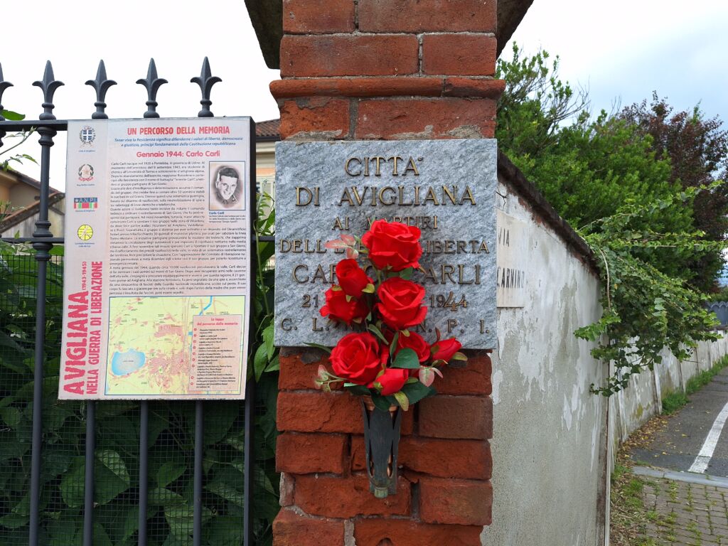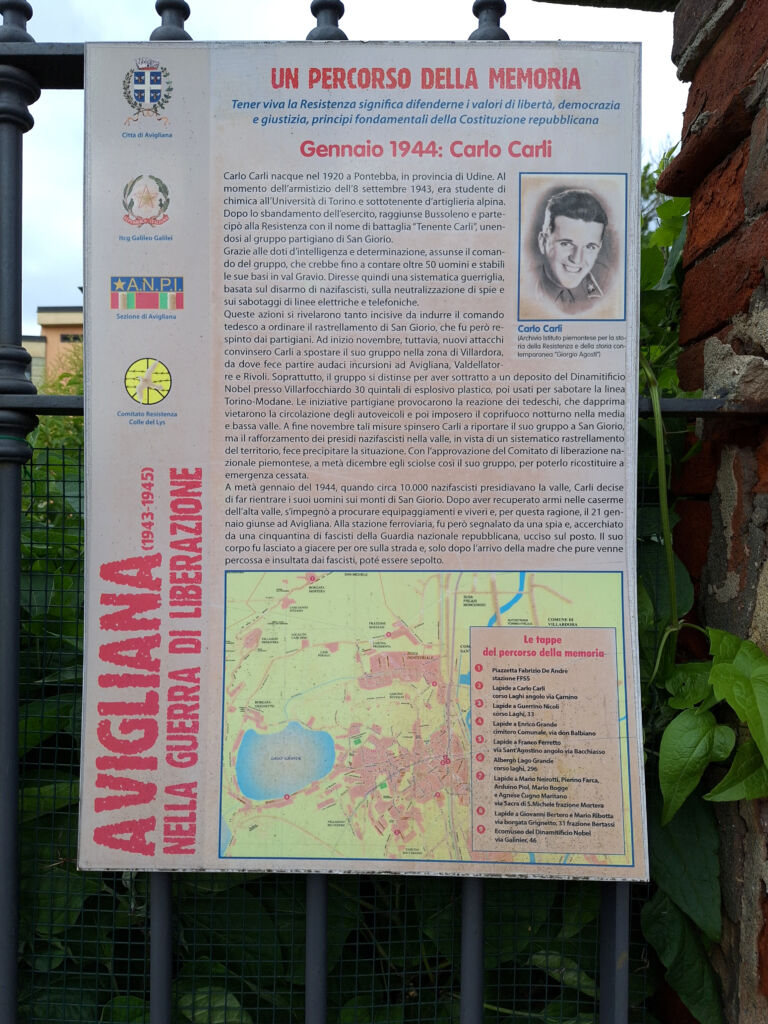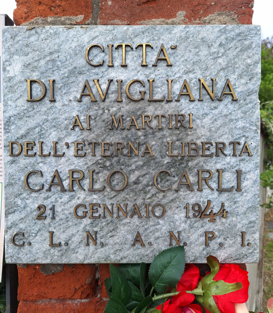 Fonte: il pannello informativo "Gennaio 1944: Carlo Carli" posto di fianco alla lastra, del circuito "Un percorso della memoria, Avigliana nella guerra di Liberazione (1943-1945)".