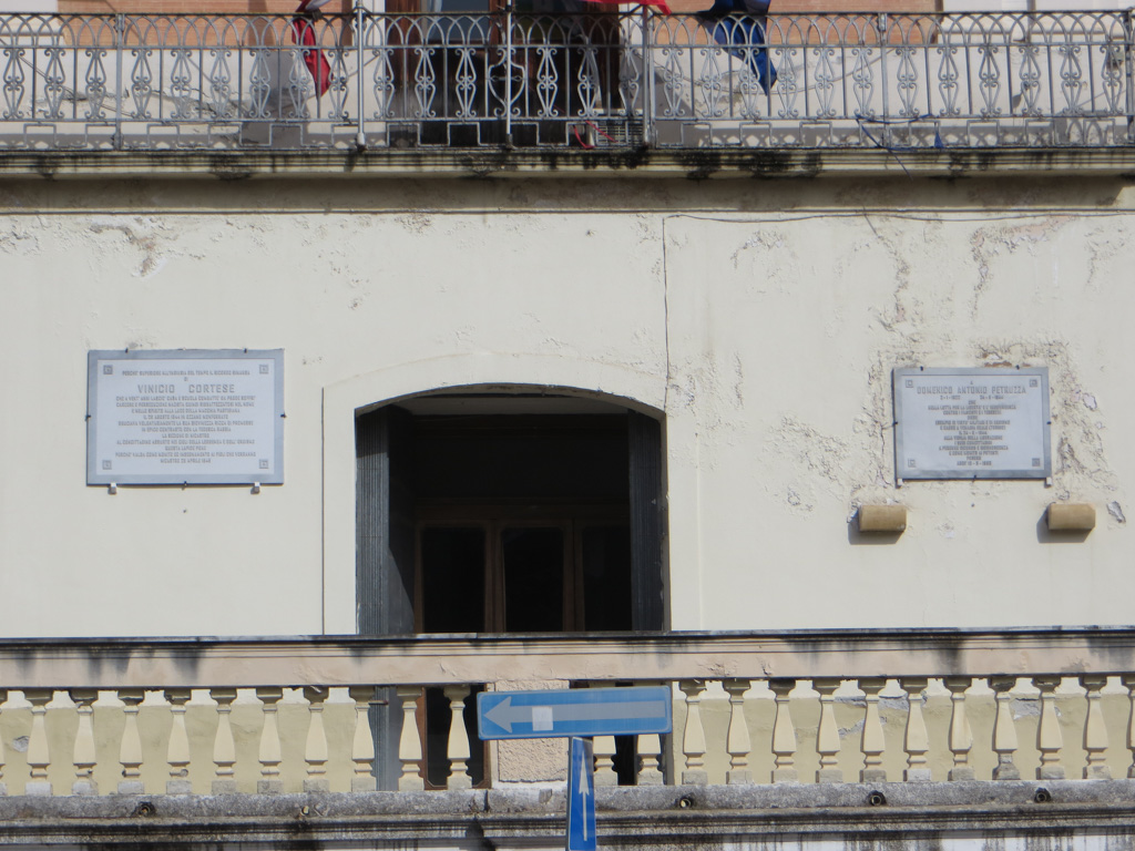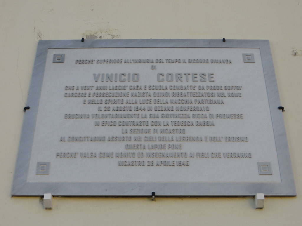 - La lapide al partigiano Vinicio Cortese, è ben mantenuta, ma la parete sulla quale poggia presenta i segni del tempo e di umidità.
