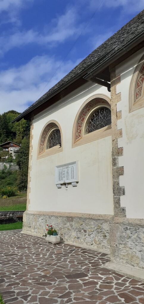 La lapide commemorativa di Tai di Cadore (Belluno) è racchiusa in una cornice di pietra posizionata sulla facciata sud della chiesa di San Candido, su due supporti sempre in pietra in mezzo ai quali è posta una lampada votiva.
