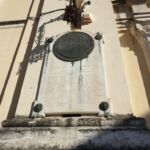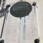 - Lapide con iscrizioni di nomi in marmo e lastra rotonda di bronzo