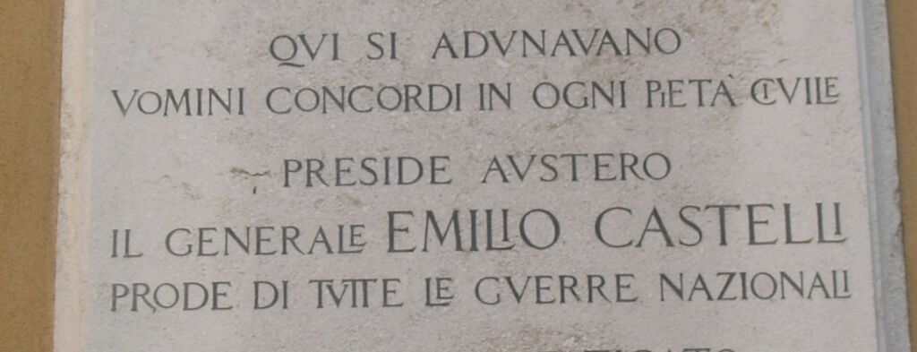 - Emilio Castelli, nato a venezia nel 1832, dopo una lunga cariera militare e diplomatico, dirigeva il Comitato di assistenza e difesa civile di Venezia. Fu Luogotenente del Regno d’Italia dal 1915, e Senatore a vita dal 1917. Mori nel 1919 a Quarto del Mille. (Vedi https://it.wikipedia.org/wiki/Emilio_Castelli).