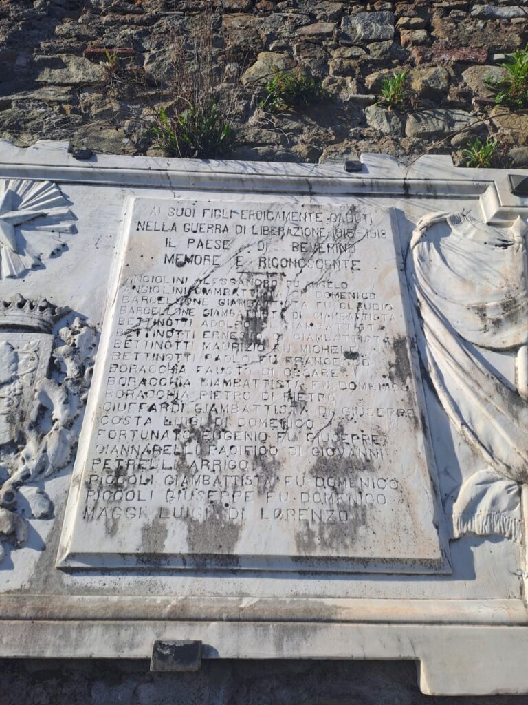 - La lapide è dedicata ai cittadini di Beverino cauti eroicamente nella Guerra di Liberazione (Prima Guerra Mondiale).