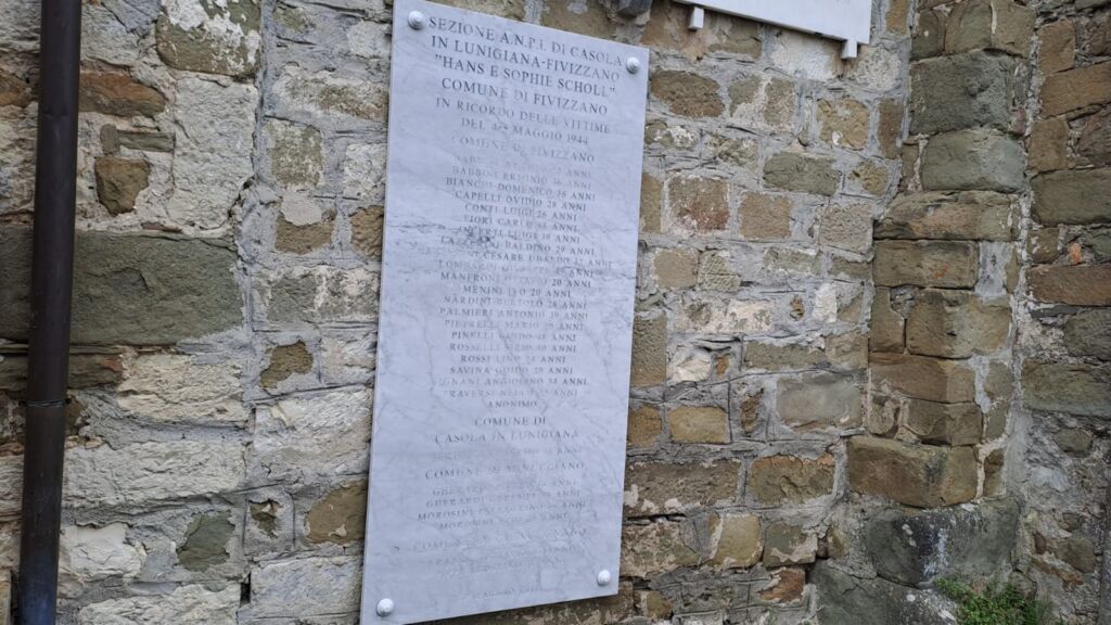 - La lapide è stata posta il 4 maggio 2014 dalla Sezione A.N.P.I di Casola in Lunigiana-Fivizzano "Hans e Sophie Scholl" in memoria delle vittime del rastrellamento avvenuto il 4-5 maggio 1944 e che ha coinvolto cittadini dei comuni di Fivizzano (22 vittime), Casola in Lunigiana (1 vittima), Minucciano (4 vittime), Giuncugnano (2 vittime).