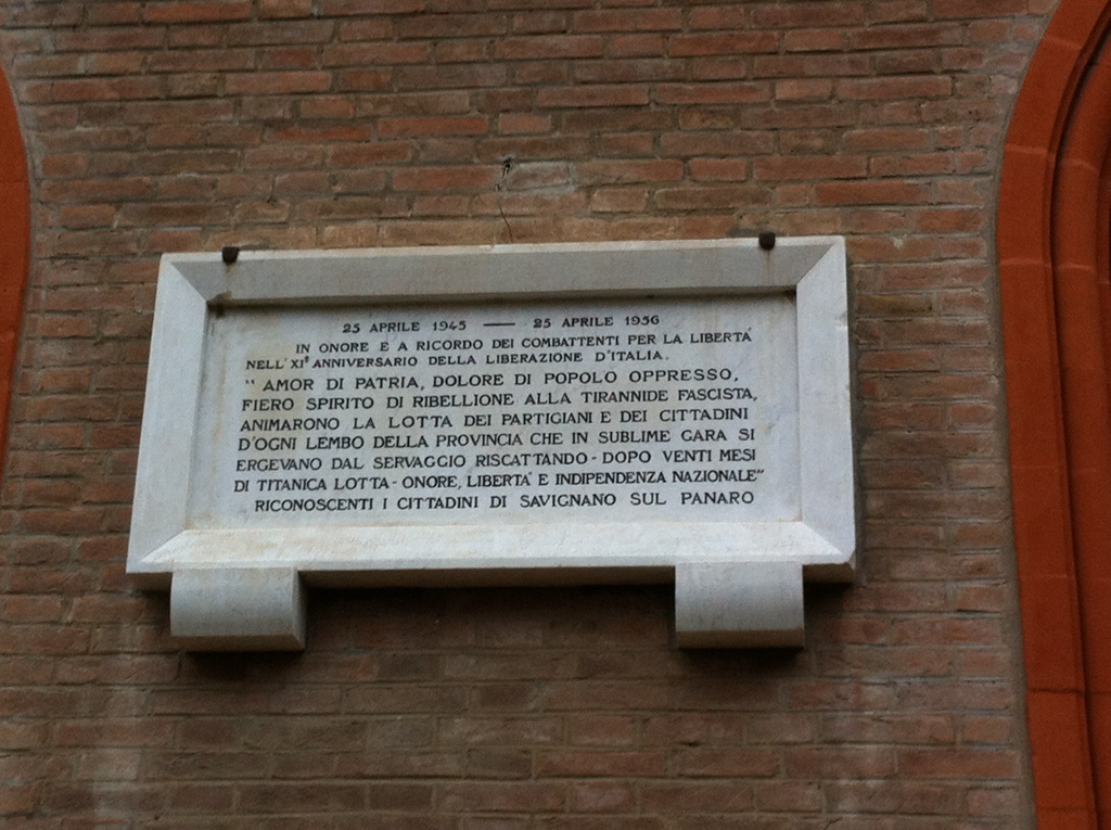 - La lapide è stata creata in onore dell'XI anniversario della liberazione d'Italia e dei cittadini di Savignano che hanno combattuto cercando di ristabilire la pace, la libertà e l'indipendenza del Paese.