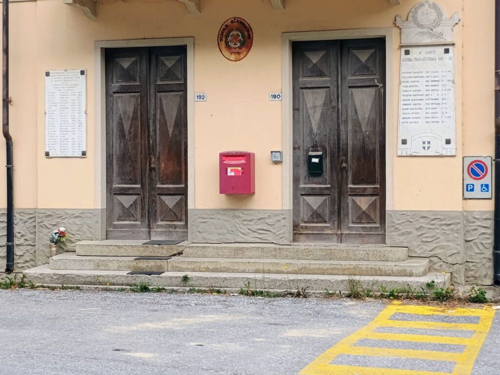 - Sulla facciata della ex scuola elementare, a sinistra la lapide ai Caduti della guerra di liberazione, a destra quella ai Caduti della prima guerra mondiale.