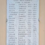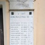 - Come per tutta Italia, giovani di leva furono arruolati per andare a combattere o nella prima, o nella seconda, guerra mondiale. Dalla lastra relativa al primo conflitto mondiale, si vede come questi giovani persero la vita per la difesa dei confini orientali dell'Italia, combattendo contro le truppe Austro-Ungariche. Combattimenti di trincea, per lo più in alta montagna, lunghi ed estenuanti in condizioni ambientali ed igieniche che, se non in battaglia, portarono alla invalidità o alla morte molti di questi giovani italiani.