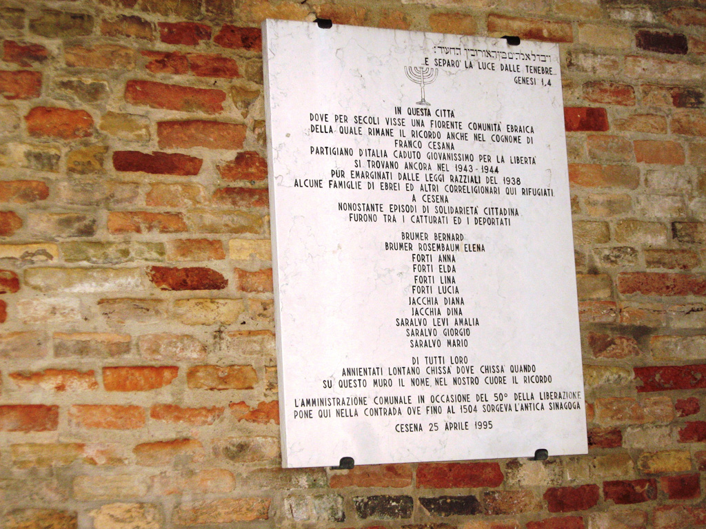 - Anche a Cesena i cittadini di origine ebraica hanno subito la persecuzione a causa delle leggi razziali. Furono imprigionati e trasferiti verso i campi di sterminio da cui non fecero ritorno.
