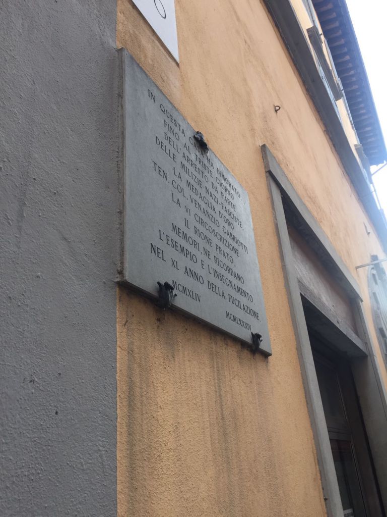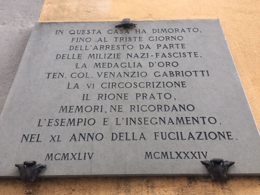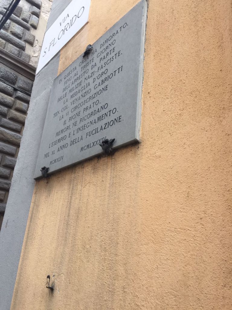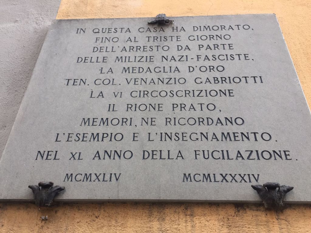 - Nel 1984 questa lastra commemorativa venne collocata in via San Florido presso una parete lungo la strada, fatta dagli abitanti della zona per ricordare il tenente Gabriotti