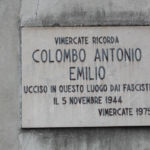 Lastra commemorativa in pietra con iscrizioni a ricordo del partigiano Antonio Emilio Colombo.
