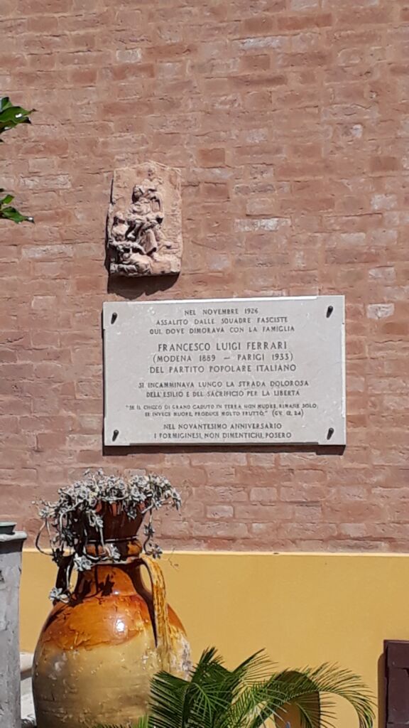 - Sulla parete frontale dell’abitazione in cui risiedette Francesco Luigi Ferrari tra il 1921 ed il 1926