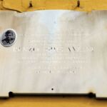 - Lapide di marmo chiaro, centinata in alto e sagomata, sorretta da quattro ganci di ferro. L'iscrizione è incisa e colorata di nero (il colore è oramai sparito). Presenta una fotoceramica.