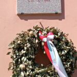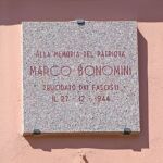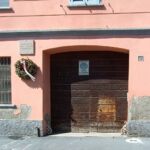 - In alto a sinistra del portone di ingresso di quella che fu la sua abitazione.