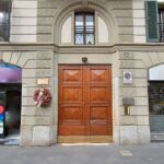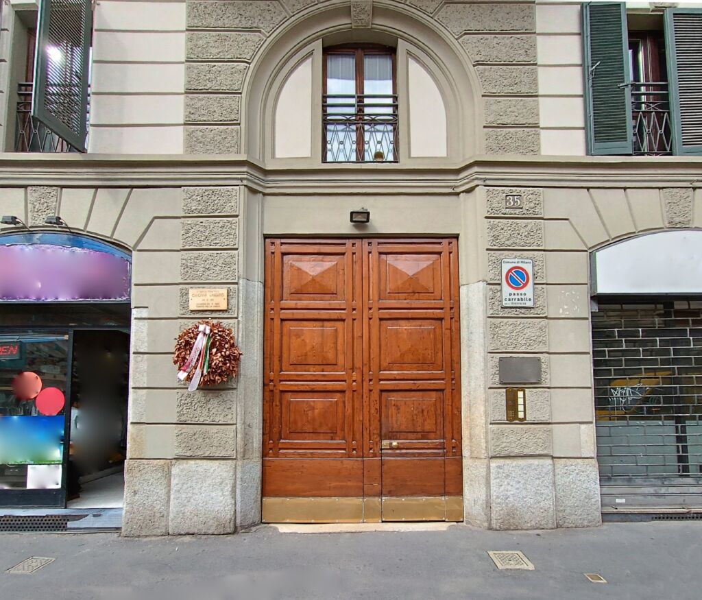 - Parete esterna dello stabile dove abitò, a sinistra in alto.