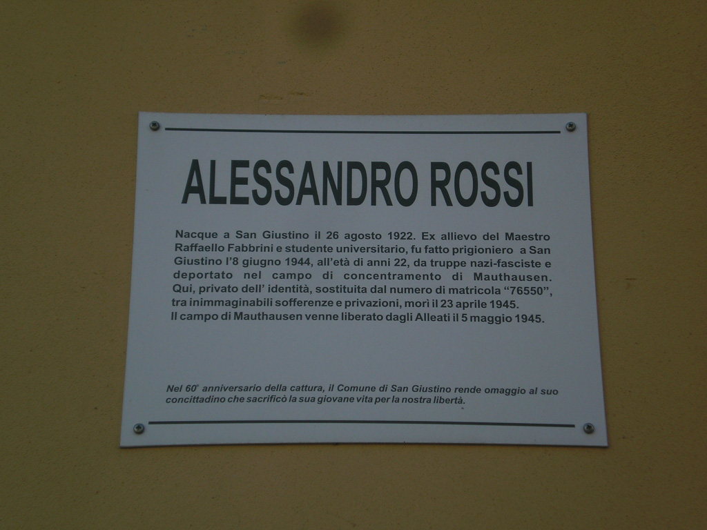 - Nacque a San Giustino il 26 agosto 1922 ex allievo del Maestro Raffaello Fabbrini e studente universitario, fu fatto prigioniero a San Giustino l'8 giugno 1944, all'età di 22 anni , da truppe nazifasciste e deportato nel campo di concentramento di Mauthausen. Qui privato dell'identità, sostituita dal numero di matricola "76550" tra inimmaginabili sofferenze e privazioni, morì il 23 aprile 1945. Il campo di Mauthausen venne liberato dagli alleati il 5 maggio 1945.