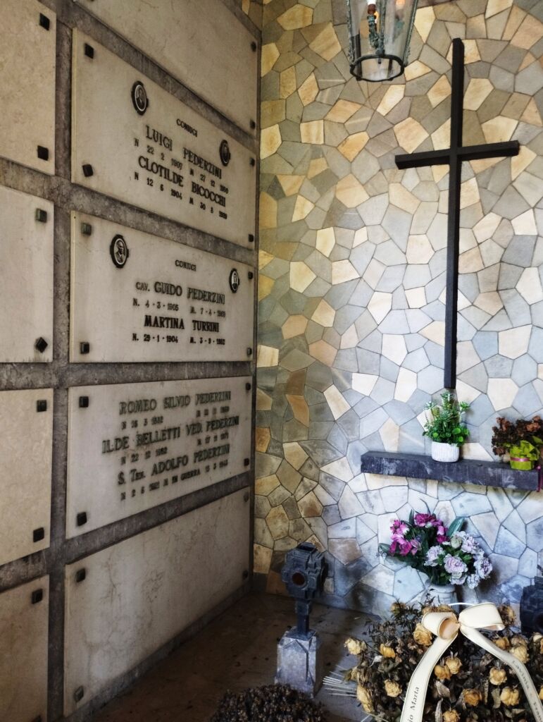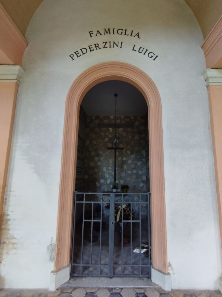 Cappella di famiglia posta al centro del porticato di sinistra del cimitero vecchio.