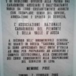 Lastra commemorativa posta dall’Associazione Nazionale Carabinieri del Piemonte e della Valle d’Aosta dedicata all’opera svolta dai carabinieri ausiliari che si sono preparati nella Caserma “Cernaia”.