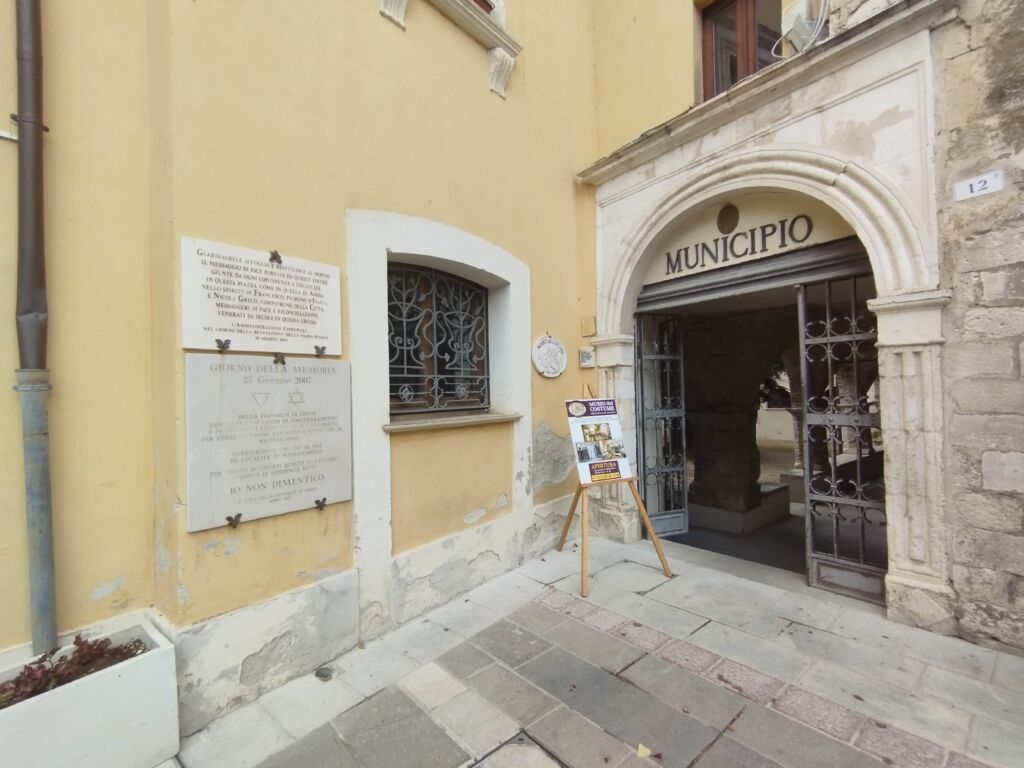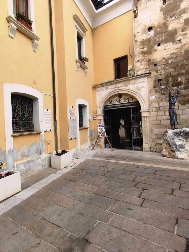 - Facciata alla sinistra dell'ingresso del Municipio.