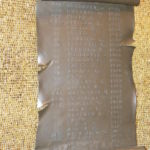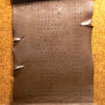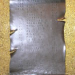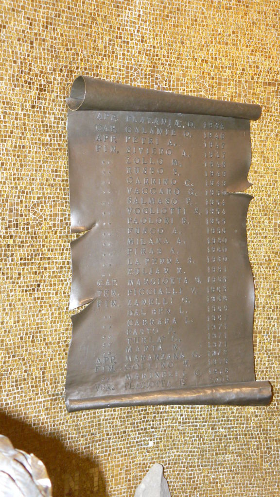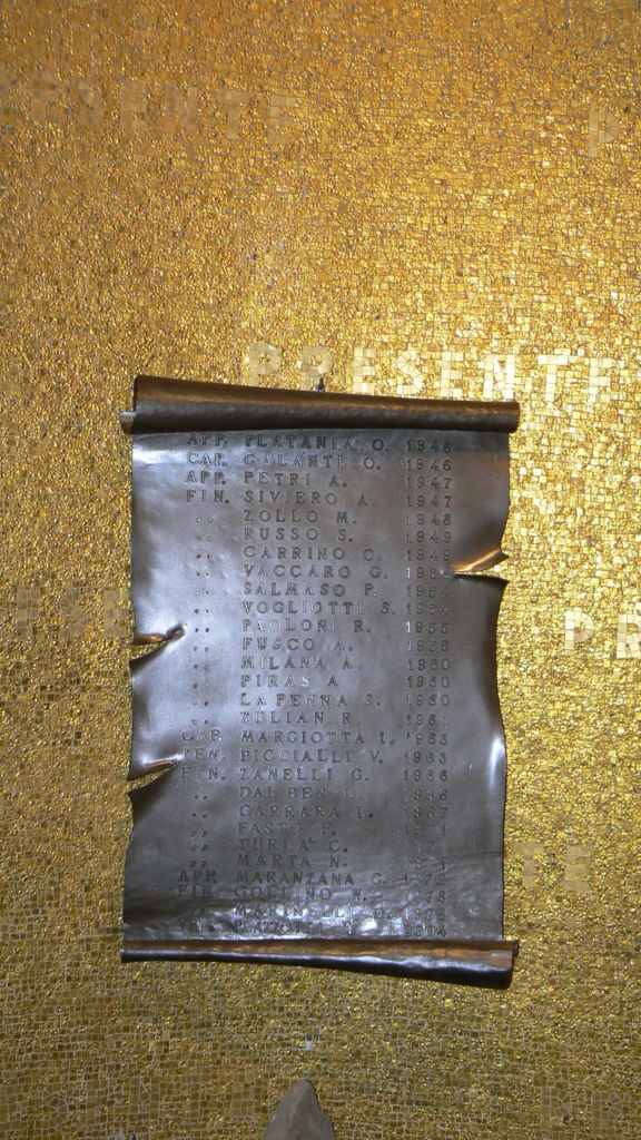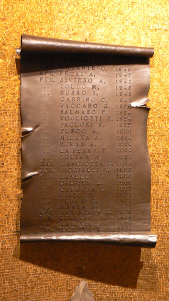 Lastra commemorativa a forma di pergamena srotolata riportante i nominativi dei militari della Guardia di Finanza di Udine caduti dal dopoguerra al 2004.
