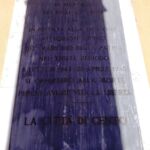 - Lastra in marmo scuro con iscrizione incisa e verniciata.