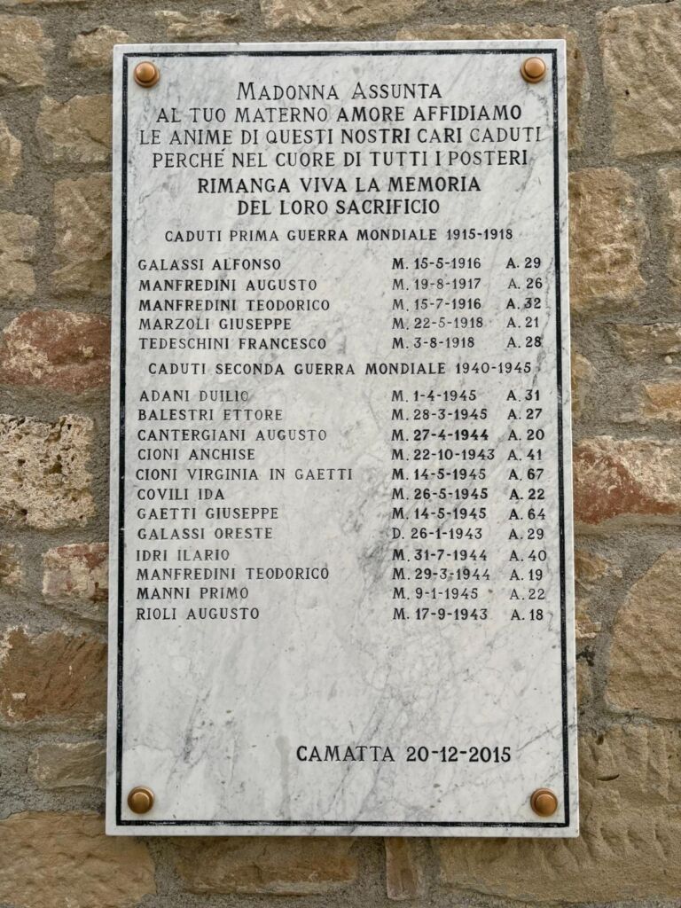 La lastra é stata dedicata ai caduti della prima e della seconda guerra mondiale residenti in quel periodo storico nella frazione di Camatta.