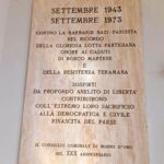 Lastra di marmo posta dal Consiglio Comunale di Morro d’Oro per ricordare i Caduti della lotta partigiana di Bosco Martese e della Resistenza teramana. La lastra fu posta nel 1973 in occasione del trentennale dall’inizio della Resistenza.