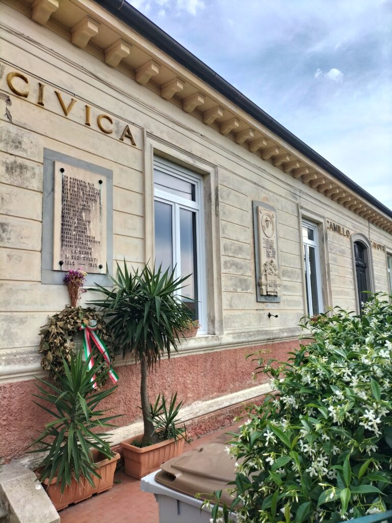 - Prospetto principale da cui si accede alla Scuola Primaria "Camillo Cavour", oggi scuola primaria Paolo Bertolani (poeta)