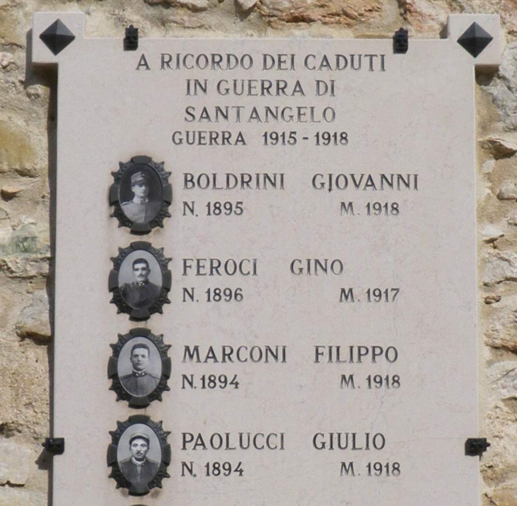 - Foto d'epoca vicino ad ogni Caduto. Sulla destra è presente una croce.