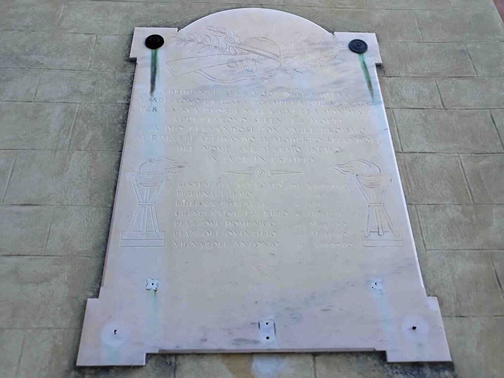 - Il marmo è stato utilizzato per la lapide commemorativa e il bronzo per le due borchie di fissaggio.
