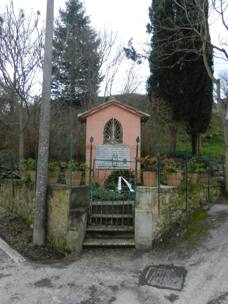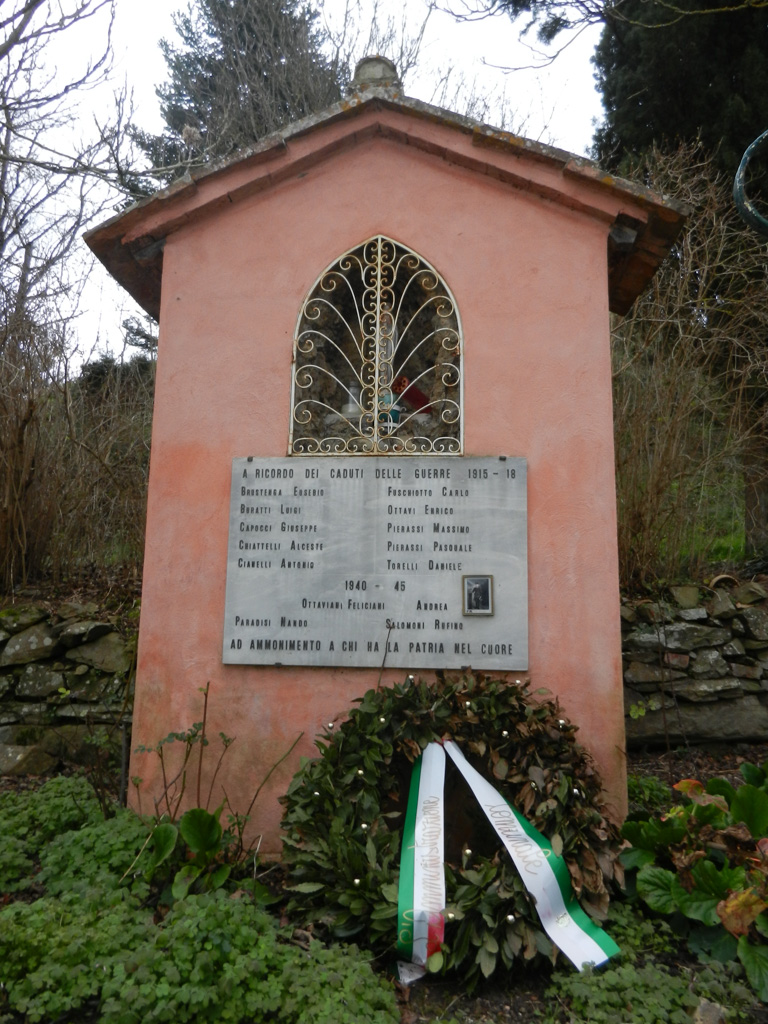 - La targa ricorda i Caduti delle due guerre mondiali ed ha la foto di uno dei Caduti, Ottaviani Feliciani Andrea.