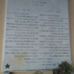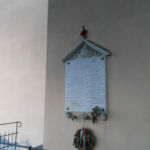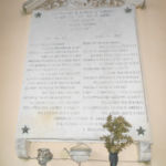 Lastra rettangolare con quattro stelline sugli angoli, sovrastata da un fregio triangolare con al centro un’ancora e un timone fra foglie di ulivo. In basso sono collocati un portafiori e un portacandela.