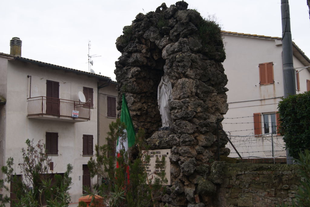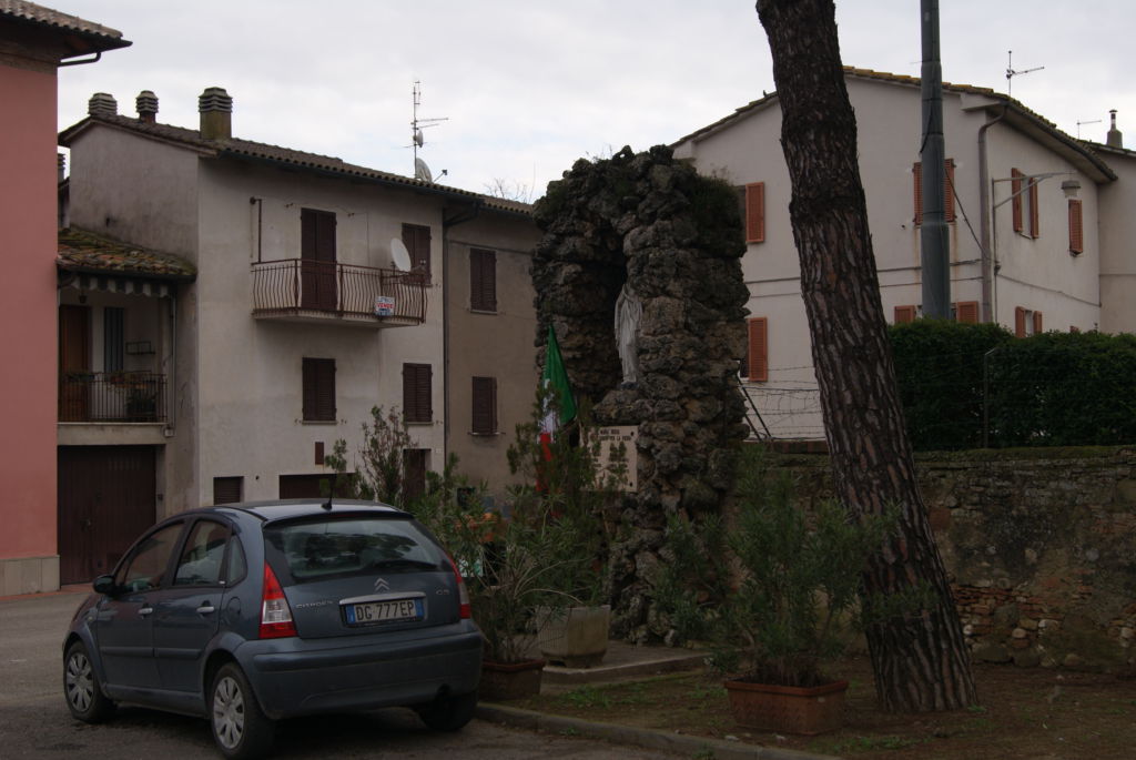 - ai piedi di una edicola a forma di grotta nella piazza antistante la chiesa locale
