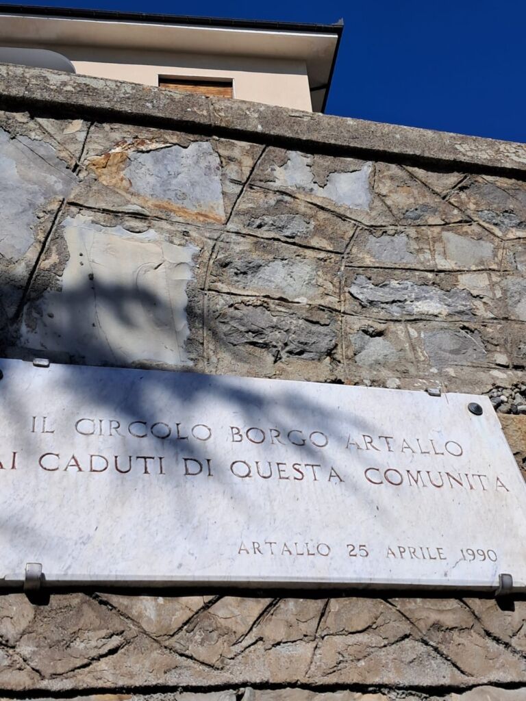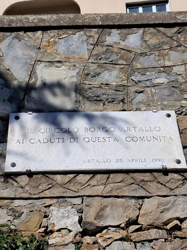- La lastra è stata posata dall'amministrazione comunale e dalla comunità di Artallo il 25 Aprile 1990 per onorare e ricordare i Caduti della località Artallo di tutte le guerre. Per l'inaugurazione e' stato scelto il giorno della Liberazione dal nazi-fascismo