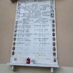 - Lastra in marmo con fermi in bronzo posti ai quattro lati, con incisioni a caratteri lapidari, e fotoceramiche ovali dei caduti. La lapide è sormontata da due travi in marmo formanti una tettoia ed alla base della lapide vi è un'altra trave in marmo lunga quanto la base e larga una decina di centimetri, messa a guisa di davanzale per apporvi oggetti, tipo ceri votivi. Sulla parte più alta della lapide, posta in posizione centrale vi è una lampada con struttura in metallo.