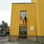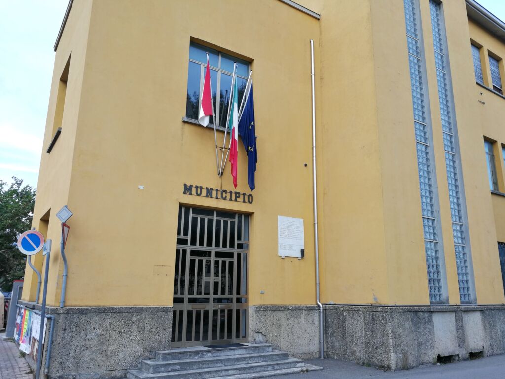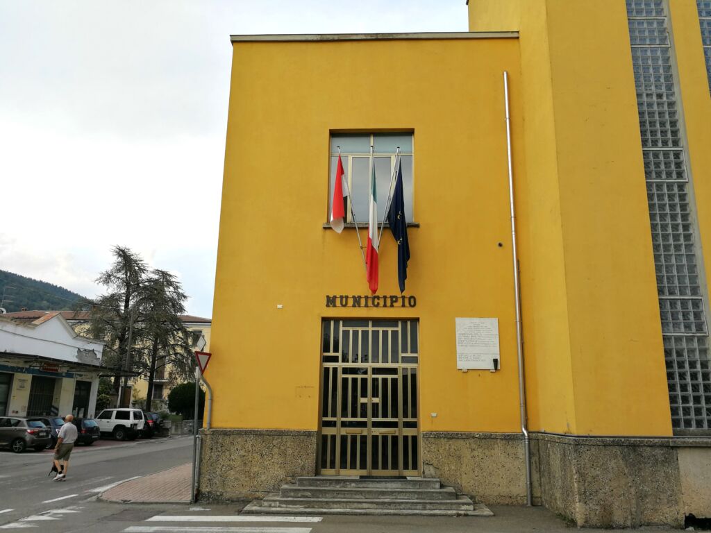 - All'esterno dell'ingresso del Municipio di Bardi.
