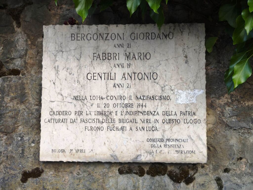 - Il 20 ottobre 1944 una squadra delle Brigate nere fasciste, in pattugliamento alla periferia della città, catturò nei pressi dell'Arco del Meloncello tre giovani partigiani appartenenti alla 1^ Brigata Garibaldi Irma Bandiera. I tre partigiani furono immediatamente passati per le armi sul sentiero che conduce da Casalecchio di Reno al Santuario della Madonna di San Luca, tra i boschi a poca distanza dal Parco della Chiusa di Casalecchio. I loro corpi furono abbandonati tra il fogliame sul luogo dell’uccisione. I tre caduti: