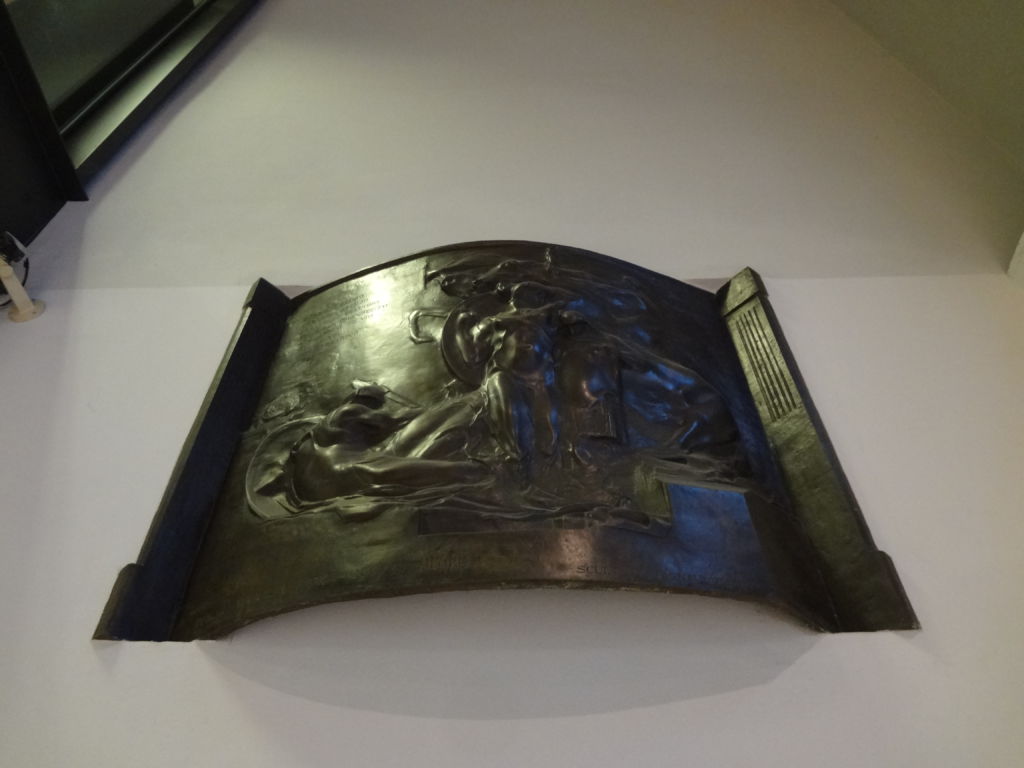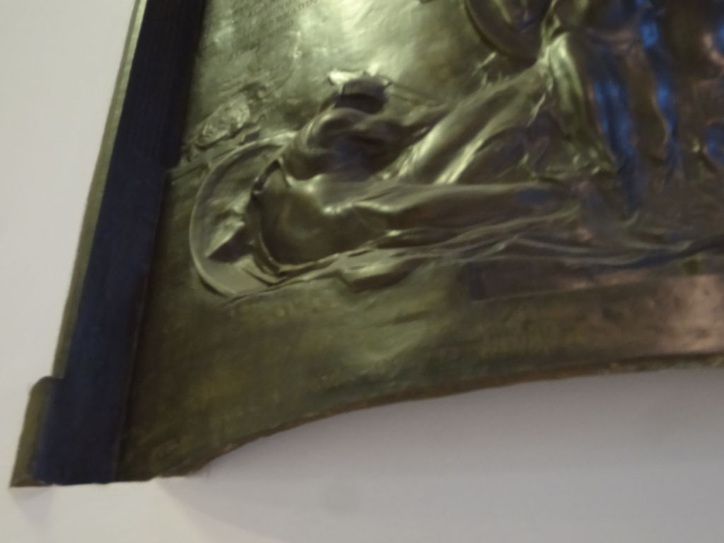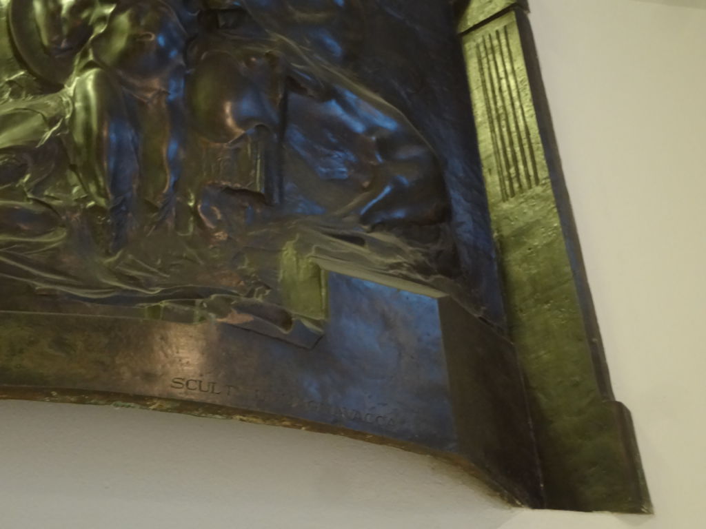 - Elegante lastra a bassorilievo. Targa in bronzo posta sotto.