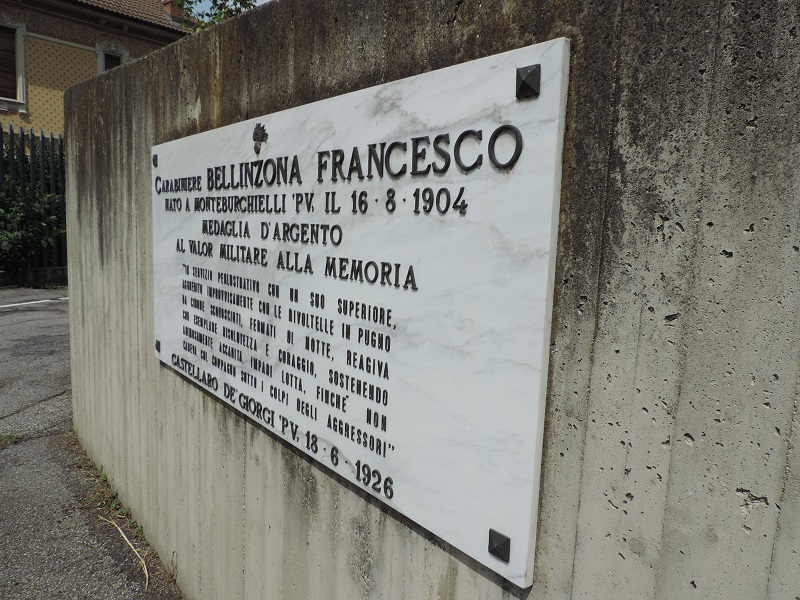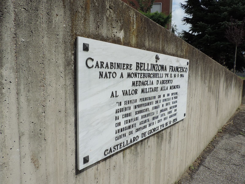 - Lastra commemorativa donata dall' Ass. Naz. Carabinieri, sezione di Mortara, per inaugurazione della nuova stabile Caserma. La lastra è ben visibile dall'esterno, come da autorizzazione nr. 2419/67-8-1948 del 08/07/1994 dell'Ufficio infrstrutture del Comando Legione Carabinieri Lombardia.