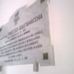 - Lastra in marmo; iscrizione incisa e colorata con vernice nera; supporti di sostegno ai quattro angoli in bronzo.